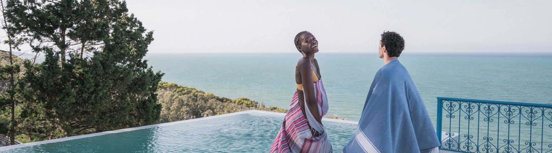 Do you know foutas? Fouta is the Tunisian word designating hand-finished hammam towels which are made out of 100% cotton. We provide the best quality hammam towels in different styles and colors produced by our dear partners in Tunisia.